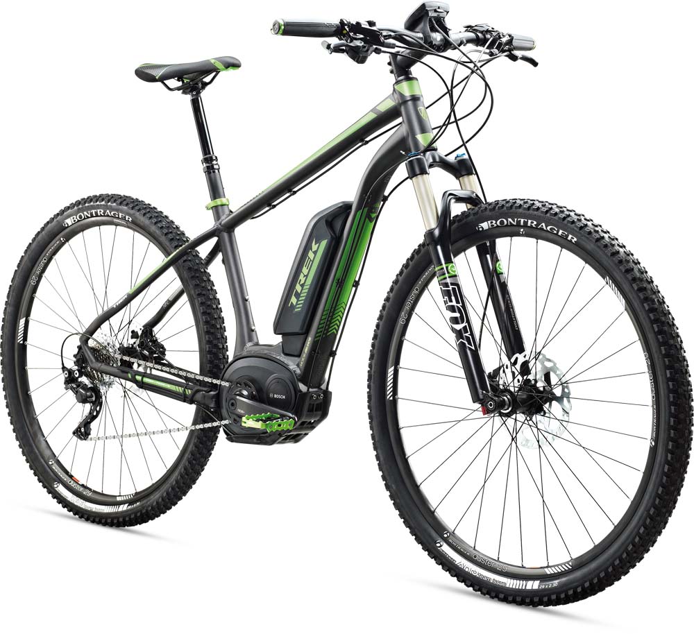 Das Modell powerfly+ 9 ist das hochwertigste und teuerste Modell aus der powerfly+-Palette von Trek, die seit 2014 auf dem Markt ist. Der Rahmen, die Geometrie und das Konzept ist bei allen Modellen gleich, die Komponentenwahl jedoch sehr unterschiedlich und auch die Motorisierung variiert. Wer viel Wert auf hochwertige Komponenten legt und/oder zu der Kategorie „Vielfahrer“ gehört, wird sich für dieses Modell entscheiden. Hervorheben darf man hier sicherlich das 10-Gang Shimano XT-Schaltwerk, die Fox-Federgabel, die Sattelstütze von RockShox oder den Steuersatz von FSA. Alles in allem hat man bei diesem Modell sehr darauf geachtet, Markenkomponenten zu verwenden, die für hohen Komfort sorgen und für langlebige Qualität stehen. Bei der Motorisierung hat sich Trek für die neuen Elektromotoren von Bosch entschieden. Beim powerfly+ 9 hat man das Motorenmodell „Cruise Performance“ gewählt, das für sportliches Fahren ausgerichtet ist; „Performance“ steht für den kraftvollen Motor, „Cruise“ für die Tretunterstützung bis 25 km/h im Unterschied zur „Speed“-Variante. Angesichts des hochwertigen Komponentensettings und der modernen Motorisierung ist der Preis von CHF 4’299.00 als äusserst angemessen zu bezeichnen.