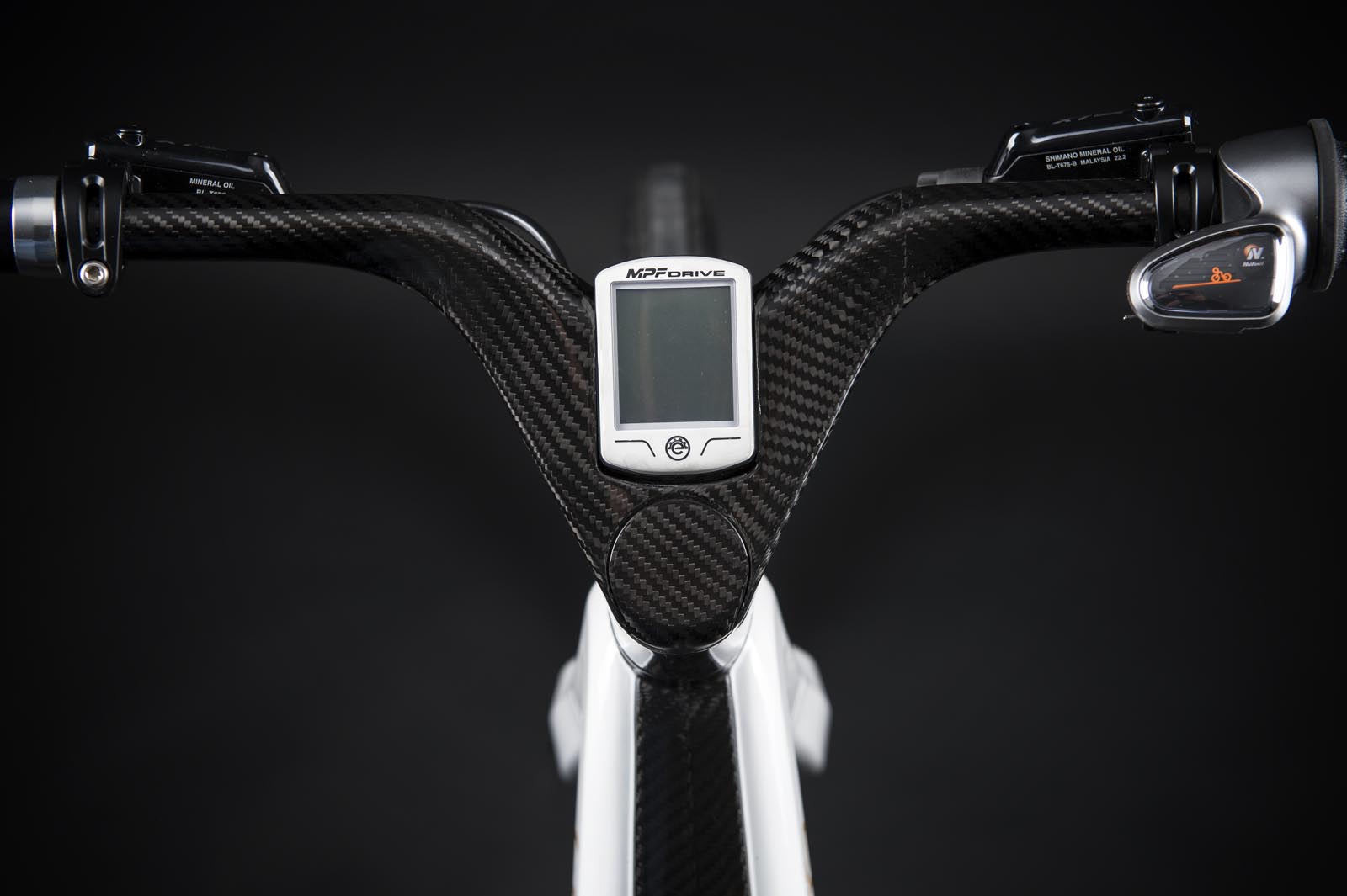 Dabei legt Armin Oberhollenzer Wert auf die Tatsache, dass es sich beim Leaos um ein hochwertiges Lifestyle-Propdukt handelt, das durch Design überzeugt. Und tatsächlich verwendet der Hersteller einen Monocoque-Karbonrahmen mit Karbongabel und Karbon-Schutzblechen und einen speziell entwickelten Karbonlenker mit integriertem Display. Innenverlegte Kabelzüge unterstützen dabei die elegante Optik. Zur stufenlosen Nuvinci-Schaltung gesellt sich je nach Wunsch ein Motor, der bis 25 km/h oder bis 45 km/h beim Treten unterstützt. Mit dem Hersteller angegebenen 22 kg Gewicht ist das E-Bike leichter, als ich erwartet habe.